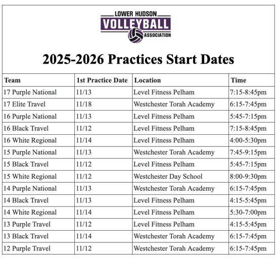 LHVA 2025-2026 Mandatory In-Person Commitment Day – Sunday, October 5th @ Level Fitness Pelham